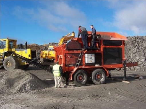 Der mobile Backenbrecher Typ KB 500-S ist geeignet zum Brechen von Hartstein bis 300 MPa. Der Backenbrecher arbeitet als Pendelschwinger. Die Einstellung des Brechspalts erfolgt mechanisch mittels Distanz-Platten. Unter dem Backenbrecher ist eine Schwingrinne integriert, die das Brechgut auf ein Förderband übergibt. Der radmobile Backenbrecher ist auf einem Tandem-Achs-Fahrwerk mit Druckluftbremse aufgebaut.